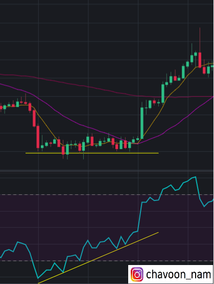 특징은 차트의 가격 저점은 보합인데 지표의 저점은 상승하는 경우입니다.