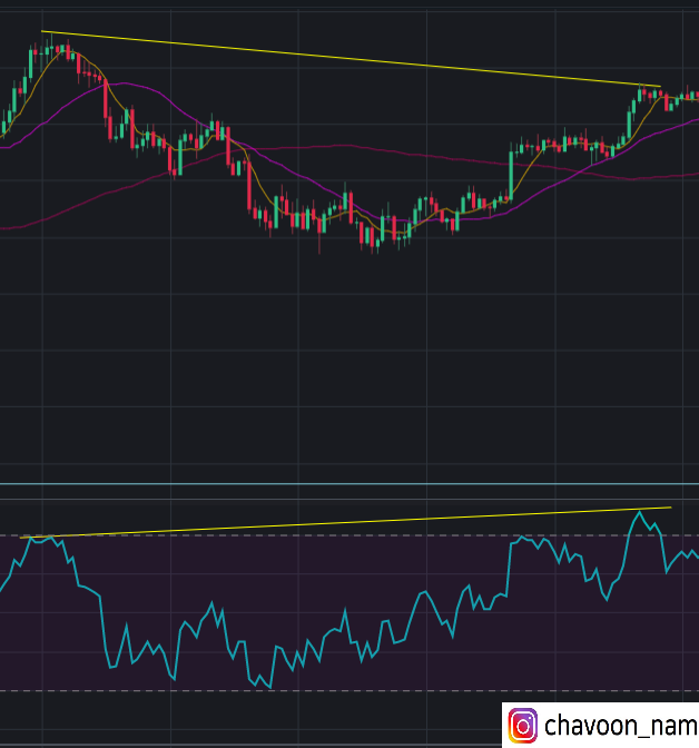 차트의 가격 고점은 보합인데 지표의 고점은 낮아지는 경우입니다.